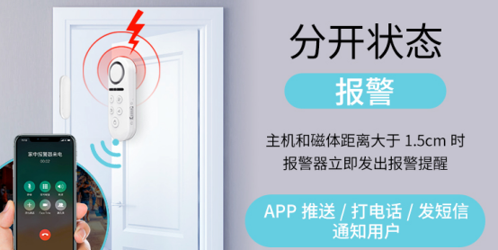 門磁報警器是智能家居安防產(chǎn)品里一種探測報警裝置,主要用來監(jiān)控門、窗的閉合狀態(tài)。