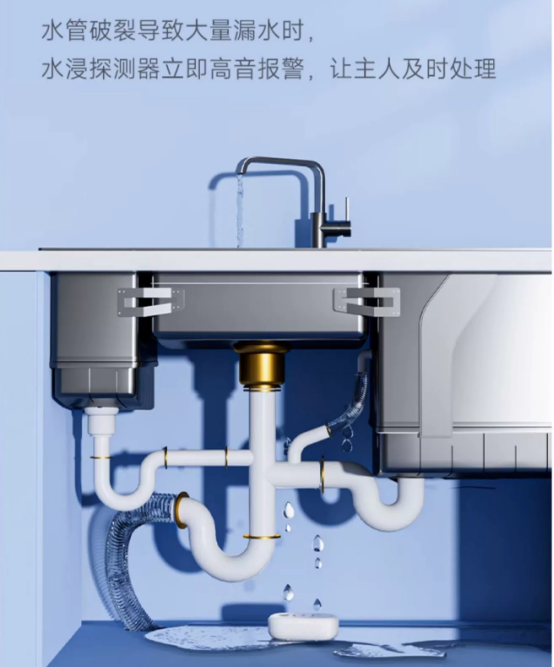 生活中難免遇到漏水、反水問題。接口斷開、水龍頭忘關(guān)、水管爆裂、凈水器漏水、地漏反水等情況。漏水發(fā)生,如果有人在家還好,可以及時處理,如果沒人,漏水量大,泡時間久了,地板起鼓、家具受損,甚至漏到樓下,而有了水浸報(bào)警器后,一旦出現(xiàn)漏水情況,就會及時報(bào)警,提醒用戶及時處理,避免造成后續(xù)災(zāi)害或損失。