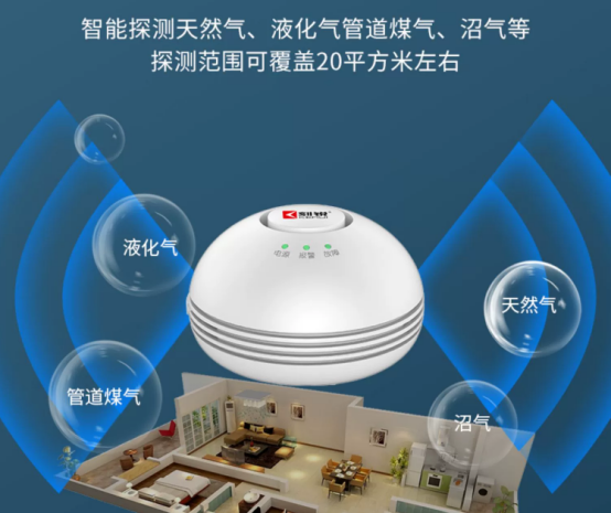 它可有效探測天然氣、液化石油氣、人工煤氣、沼氣等可燃?xì)怏w,一個這樣的燃?xì)鈭?bào)警器,探測范圍可以覆蓋20平方米左右。