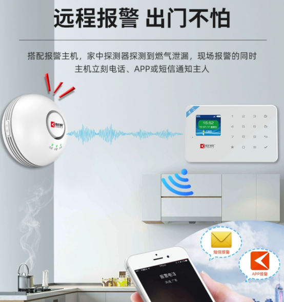 若是搭配報(bào)警主機(jī)使用,發(fā)現(xiàn)燃?xì)庑孤┖?,現(xiàn)場報(bào)警的同時還能通過電話、APP、短信等方式向用戶遠(yuǎn)程告警。