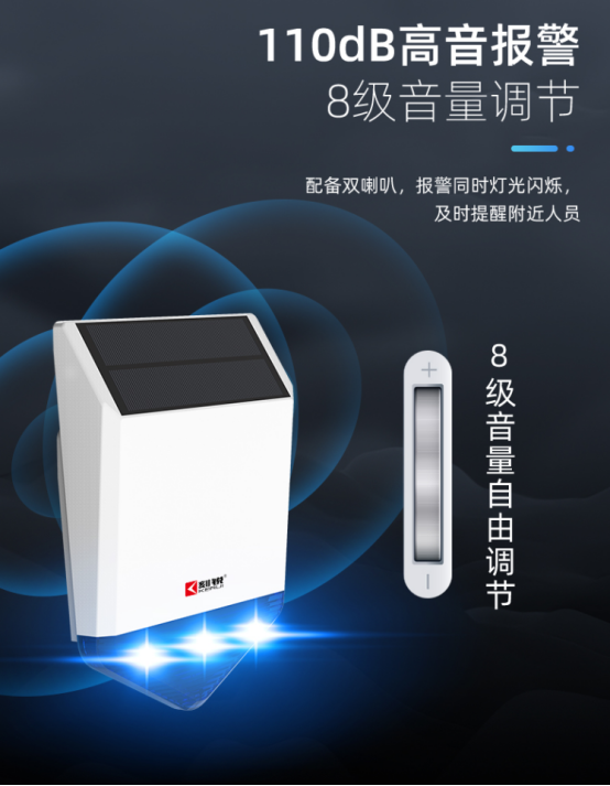 因采用了無線連接技術(shù)、IP66防水技術(shù)、太陽能發(fā)電技術(shù)(戶內(nèi)使用時可用直流、交流電供電)、該聲光報警器具有防水防塵、安裝簡單方便、室內(nèi)室外都可以用的特點,非常適合別墅庭院、養(yǎng)殖場、果園、溫室大棚等場所使用。