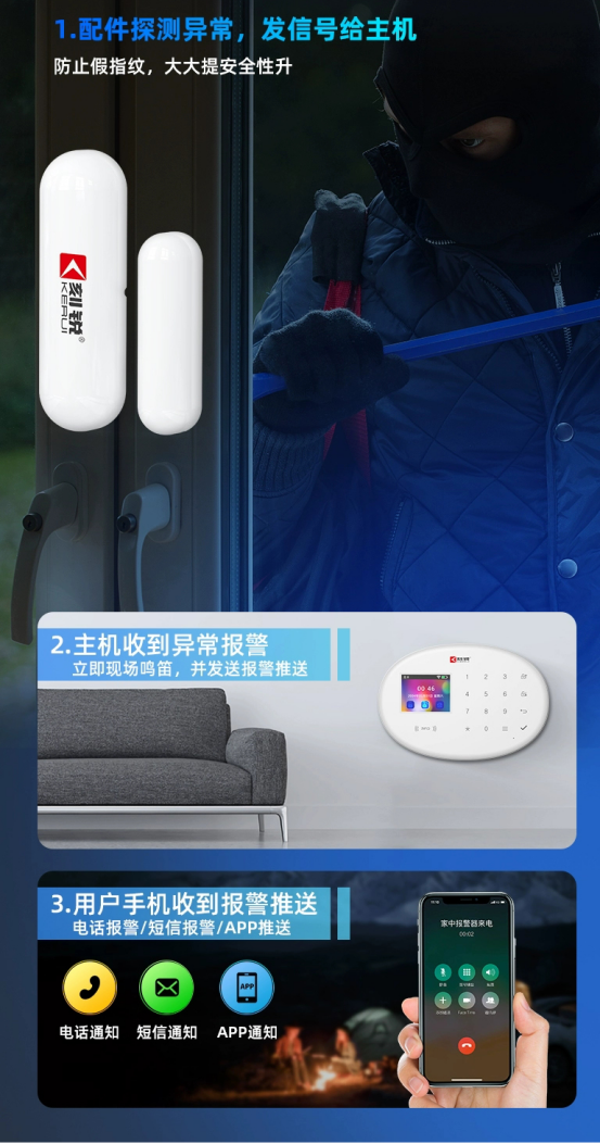 在功能方面,它具有WIFI∕GSM雙網(wǎng)聯(lián)網(wǎng)功能,發(fā)現(xiàn)警情,就可以通過電話、短信、手機(jī)APP信息等方式向用戶遠(yuǎn)程告警。因?yàn)椴捎昧藦?qiáng)大的CPU主控,其性能非常穩(wěn)定、可靠。
