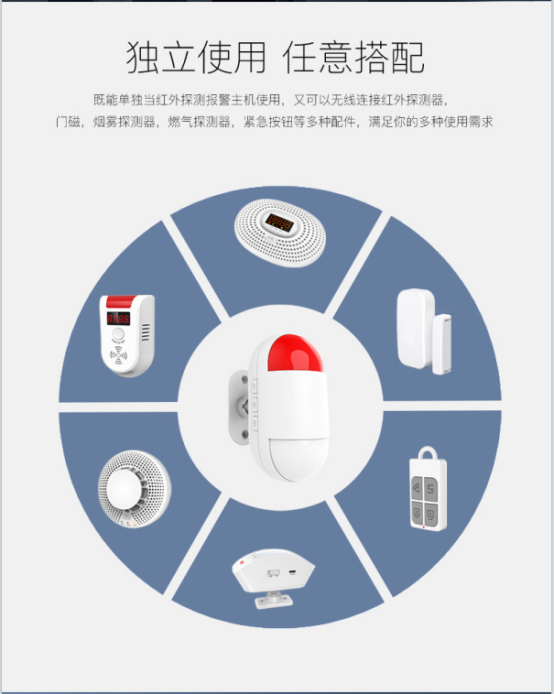 夜晚當(dāng)報警器使用時,只要紅外探測器(內(nèi)置或外置的)探測到有人時,就會發(fā)出刺耳的報警聲嚇退入侵者,同時提醒鄰居,給用戶帶來更貼心更放心的安全保障。